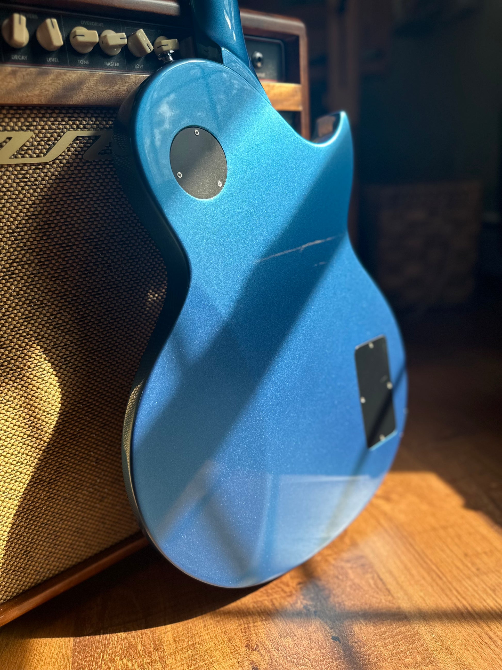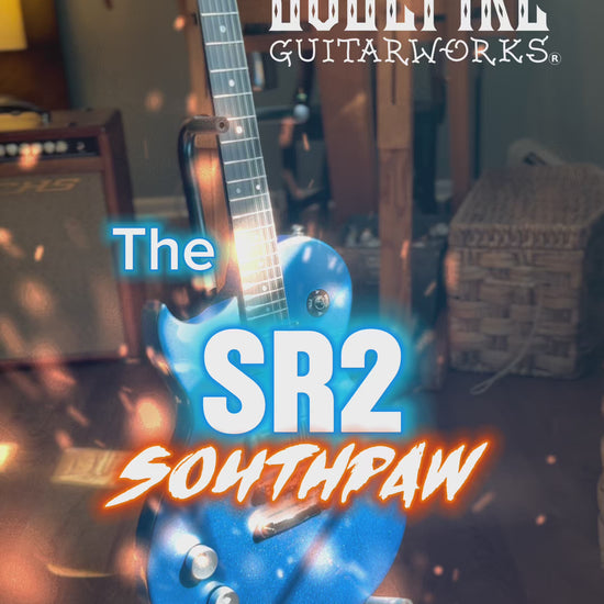Introducing soulfire’s first ever left-handed SR-2. Serial number SR2L-25001. Made in the USA with sustainable cherry tone-woods and painted in our take on Pelham blue metallic . Features include chambered, contoured body , signature cast volume and tone knobs, two of our very own hand-wound “wick mojo” humbuckers, silverplated and enameled emblem and truss rof cover, Grover tuners, and our signature “soul” and “fire” selector switch. Complete with a premium Road Runner soft case standard. All of our models can be custom made as lefty’s and equipped with Bigsbys!